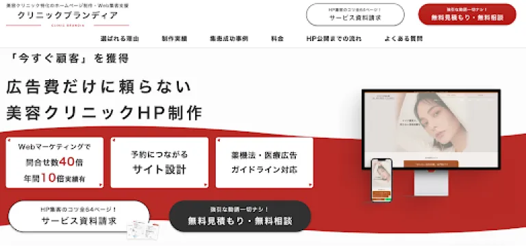 「クリニックブランディア」は、株式会社TENSENが運営する美容クリニック特化型のホームページ制作サービスです。