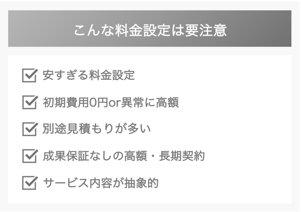費用だけで比較するのではなく、信頼性や成果実績を踏まえて判断することが重要です。