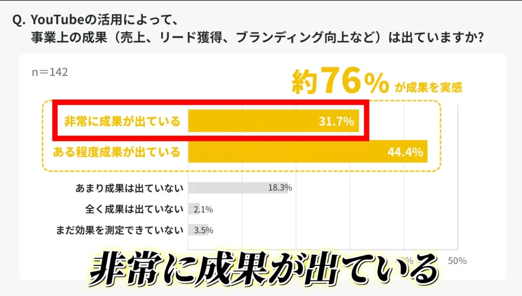 しかし、調査によると約76%の企業がYouTube運用による効果を実感しています。