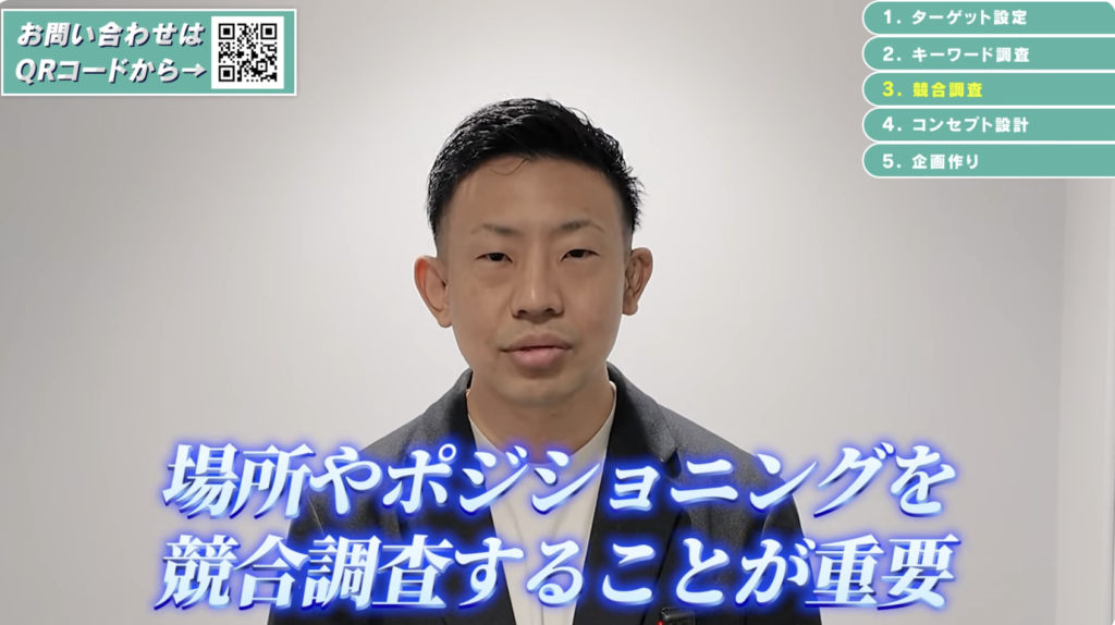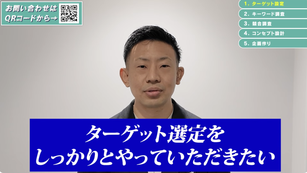 ターゲット設定やキーワード調査、競合分析、コンセプト設計など、本記事の順番で進めれば、問い合わせにつながるチャンネルの基盤が整います。