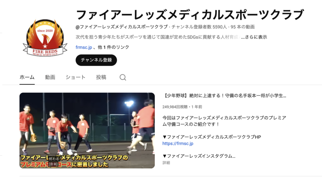 「ファイアーレッズメディカルスポーツクラブ – YouTube」では、実際の指導風景を密着形式で公開しています。